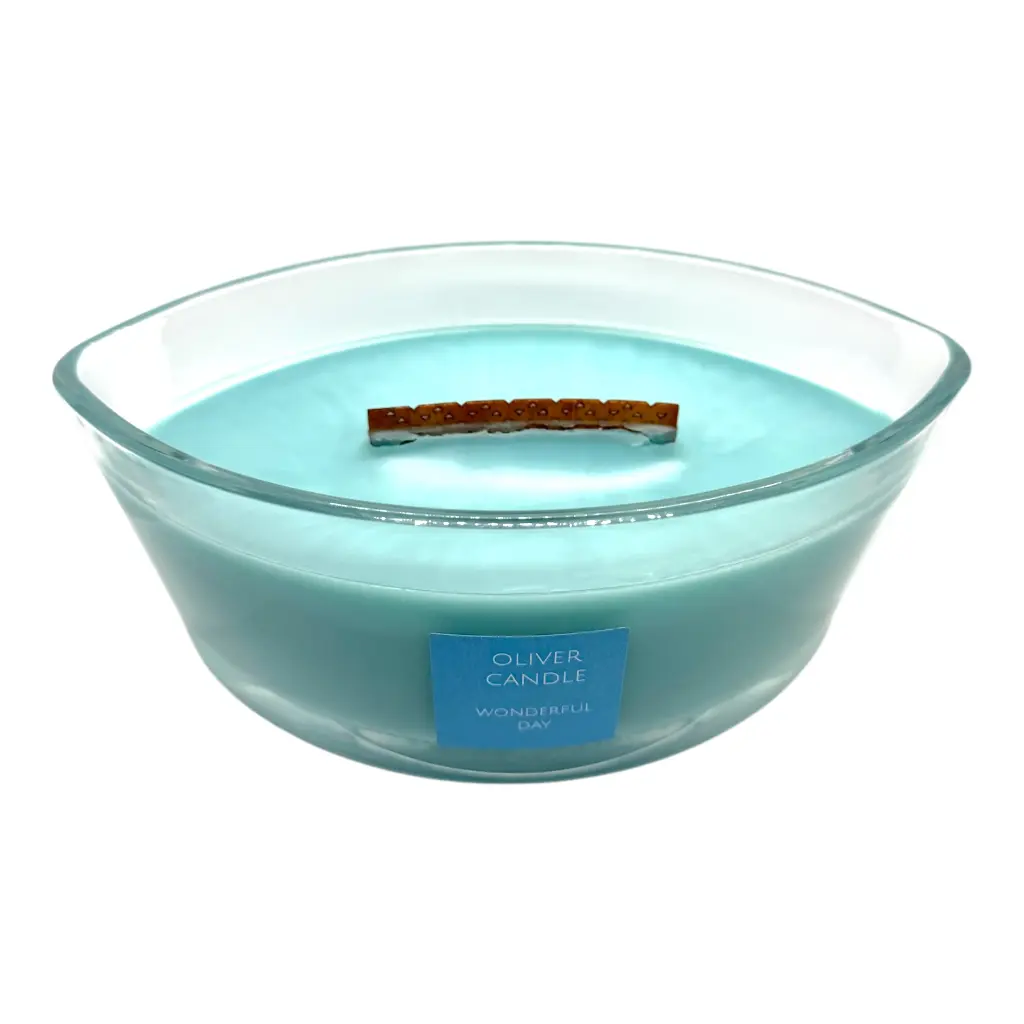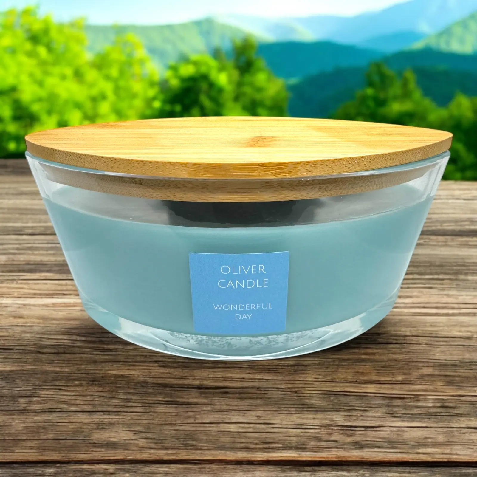 We use an all natural wooden wick premium wick. Each candle comes with a natural bamboo premium lid. 16oz of premium soy blend wax.